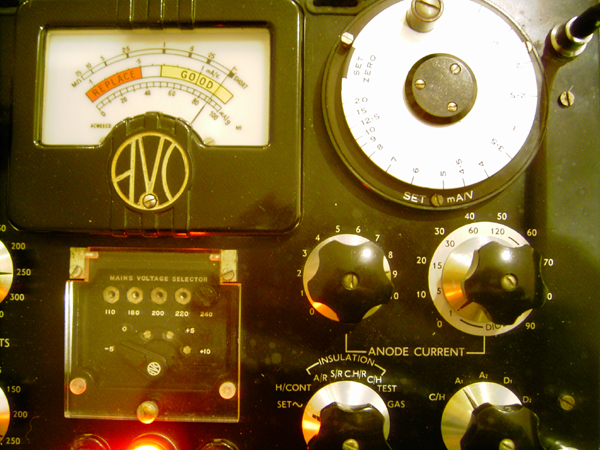 THIS IS HOW I PERSONALLY SET UP MY OWN AVO CT160 WHEN TESTING A 6SN7 TUBE. This tester is a top model, and one of the finest and most reliable ever made. It can do very much, and it is important to go through the handbook step by step. Learn how to use all features, and pay attention to what all settings do. Once you know how to use this tester, you will start to like it very much, and start to realize it's wonderful and reliable way of functioning. Interesting is also that the meter accuracy is unrelevant, accuracy comes from reading the values at the knobs. The meter is only used as "zero" indicator for most readings, because this tester is a bridge type of tester. FOR LEGAL REASONS I SAY HERE: DON'T REPEAT THIS. ONLY USE THE OFFICIAL HANDBOOK. THIS IS ONLY HOW I PERSONALLY USE IT. 1) Set the mains voltage with the switches under the plastic cap. The right setting is when the needle is closest to the "~" sign. Always check this before every measurement. These are the socket connections for 6SN7 2) Set The grid to -8Volts. Set Anode to 250Volts