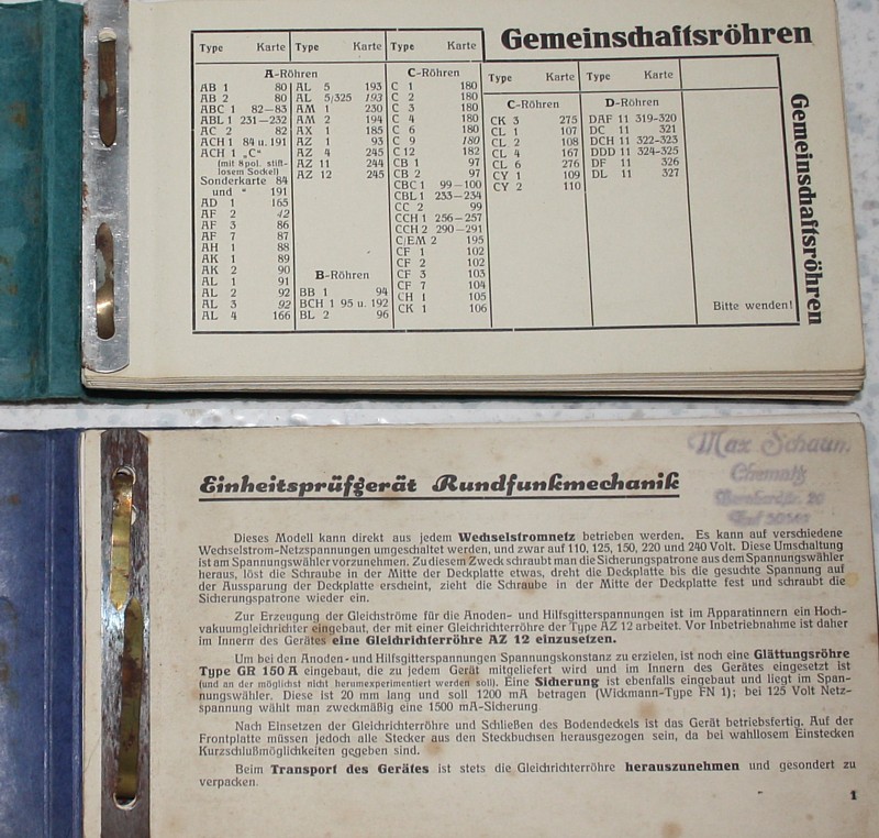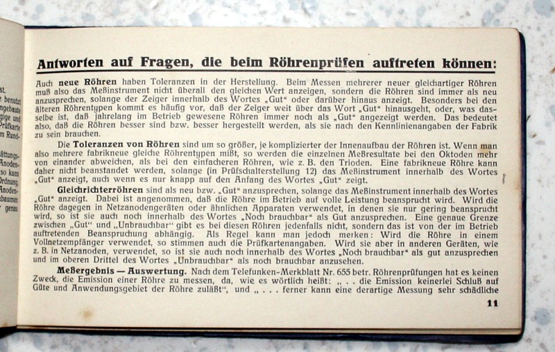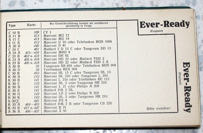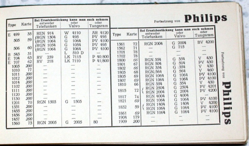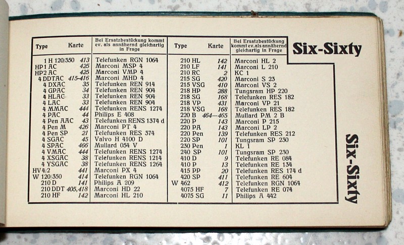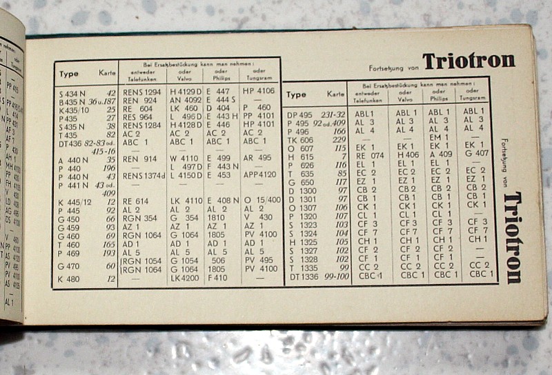 Very interesting is the card selector book, this is a universal Funke book. It gives the cards you need, but also refers to replacement tubes, and actually these replacement tables are the finest I ever saw. It gives information about tubes you never expected. This little book by itself is very valuable if you collect tubes. Did you know you can replace PX4 by a tube called HV4/2 or S30C. Replace RE604 by 420SP, or replace AD1 by a Triotron T460? Set your Ebay search for T460 and wait for an email :)