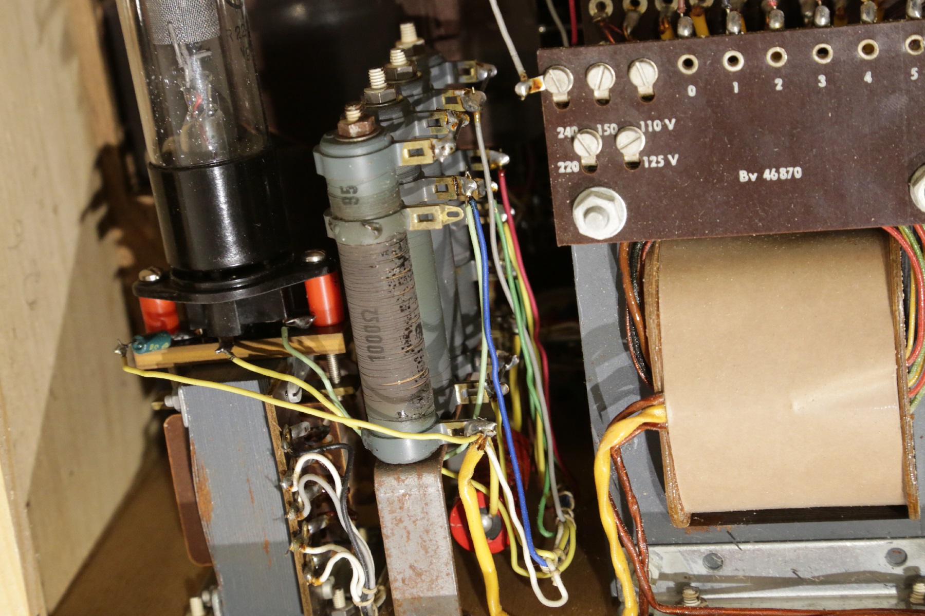 Here you can see the only repair I needed to do. The resistor of 1000+95 Ohms has seen some heat. So I took it out, and the resistance values were perfect. I have repainted it with heat resistant grey paint, and put it back in.