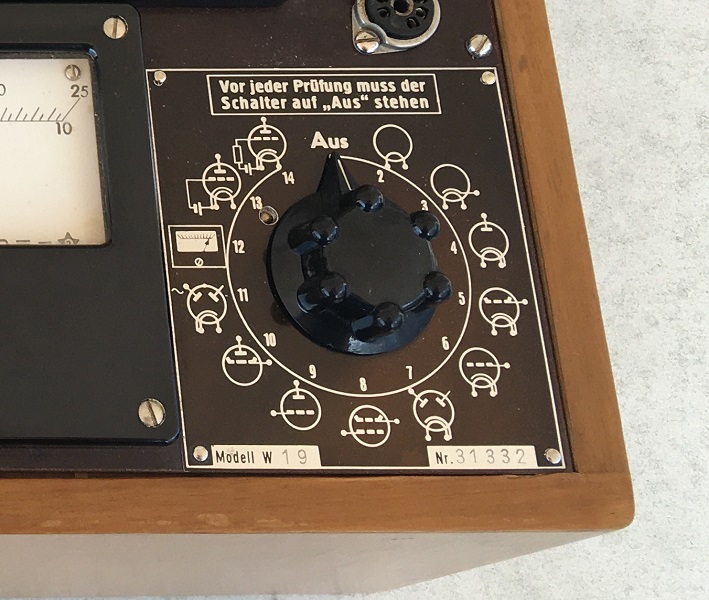 The “finger switch” as you can see on the inside, is the heart of the W19, and the only part which will wear out. Though it is very robust, this is something which can still happen. The plastic wheels will scrape off some material, and when the axis will get some play also, contact problems will be the result, and inevitably, people start to bend the contact fingers, and in the end make only a mess. So such a switch needs to be completely removed and overhauled. Lifetime of this switch, as said is very high, but if used in a shop, like 25x per day for 25 years, there comes an end to it. Not to speak about army used W19, which sometimes were used 8 hours per day to re-test large safety stock on a yearly base. In such a case, also the pin contacts in the deck will need re adjustment. Which is very tedious work. With this tester all of this was not needed. The whole tester is almost never used. Really this was a wonderful find.