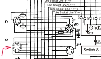 Note: When using test cards for Au8 tubes, such as EM4, AD1, AZ1, AL4, EL3n, and many many more, it may be a good idea to build the Au8 socket inside your tester. If you do not want so, you can build an adapter socket, using the above table. With that adapter you can use the Au8 cards that we sell.