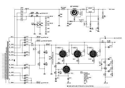 Anton van den Oever, from the little village Hazerswoude in the Netherlands visited me in Germany in 2016. When I was young, I was Hazerswoude, to pick up parts for my motor cycle. I still remember it. The world is so small. Anton knows so much about tubes, and he was so modest about it. He is also a leading member of the Dutch association of historic radio collectors. We had a long and wonderful talk about tubes and the L3-3. Anton has done a few remarkable changes and improvements to his L3-3. One of those is shown here. He found a way to increase the anode current, a really clever way. The anode current is supplied normally by two pentodes in parallel. Each has 75mA, so a total of 150mA is possible. A third pentode is used for the internal 250V. This voltage was now created with a transistor circuit, so one of the pentodes could be used for something else, and it was put in parallel to get 225mA.