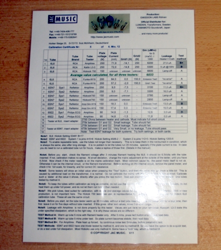 Unfortunately these are the good exceptions, and most tube manufacturers avoided that question like monkey plague.When measuring real DC plate current, you need very precise and heavy electronics, these tube testers are expensive, and may need calibration or periodically verification of the tester. In the instruments world the definition about calibration and verification is a reversed one.