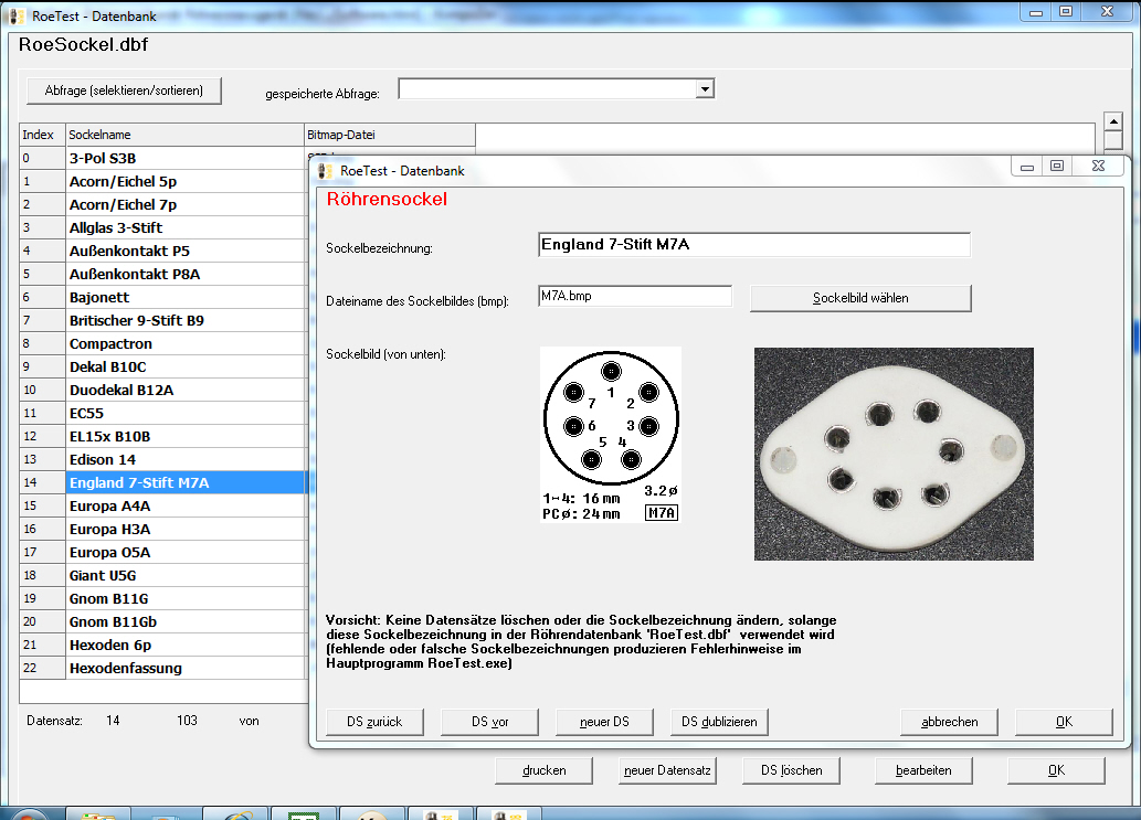 FUNKE. (Max Funke) Electron test equipment factory. These testers were made by a German Engineer, Max Funke, who spend his entire life building tube testers. After the war he found his company located in the Russian occupied zone, East Germany, and his property was stolen by the government. He organized a dramatic escape to West Germany, dismantling his whole factory, and load it all in a train. The cargo was supposed to go the West, with false papers, and Max and his family would escape to the West via another way. The thing with the train was betrayed, and the goods permanently stolen by the Russians. However, the Funke family could escape in 1952, and he founded the company Max Funke KG together with a partner who financed him. As he had all plans in his head, he was able to ramp up production in West Germany in only 6 months. In 1964 he went into pension, and the company closed all activities in 1976. After this time comes a very curious period, that know very little about. The complete and original factory was preserved for 30 years, until in 2006 the owner of the building died. What I know I was only told. The children, who inherited the building where not interested, and only wanted to sell the building. The sales of the building + what was inside, was done by a broker, from whom the contents on the shelves was uninteresting, as he gets his percentage of the building sales. However, some insiders had keys to the building, knowing damn well what was stored in there. It was the complete inventory of a 45 years old company. I was send pictures of this, by someone who was in good and honest contact with the Funke family, and he was so upset by what happened. Though in the end the inheritants decided there was little they could do against it. Inside was a massive amount of half finished materials, incl 50 (!) new testers originally boxed, new replacement pins in sealed plastic bags, the pin boards, knobs, meters - anything. A complete wall with shelves, and a pile of each PAGE of the blue book. I saw pictures of that shelve wall myself. Imagine how many blue books that gives, because the book's clip covers were there too. Full boxes of resistors, sockets, TONS of new test cards, and may many other things. Like Ali Baba's treasury cave. All of it laying nicely sorted on shelves. It happened around 2006. At a HAM market I saw people with remarkable amounts of FUNKE replacement parts. There is a movie on youtube about the old factory, but I can tell you this was after a great lot of stuff, was already removed from the building. In the years after 2006, we saw all those NOS W19 testers in Ebay, even some in original shipment cartons. What shall I say. Even today while I write this in 2015, people are selling dozens of complete NOS sets of test cards, blue books, and knobs and meters and whatever small parts in lots. You can just see there is a 'source' somewhere. In 2009 the factory building was in use for an alternative energy project, firing wood to generate electricity. The factory documentation as it was found, is now stored in the archives of the German Museum in München. In the internet I found some documentation on a Funke Oscilloscope, and also some grounding test equipment he build, as well as TV picture tube testers. A miniature capacitor tester, a battery tester, etc. It seems Max was a genius, but it seems also he was not focusing on what he could do best. The later tube testers had cards for transistors too, but things went too fast for him, as he became older, and there was nobody to follow him up. His work with tube testes ended with two top models, the W19S and W20. Though he had a new parametric tester preparation, model W23, but this one never made it into production, since the end of the tubes production was near. The W19S is the largest and final model which is completely programmed via the punch cards. The W19S version has a Septar socket, which is a militray tube only, and a more rugged case. Whereas W19 has the advantage of a lovely bright wooden case, and is lighter weight. A total of 5000pcs W19 were made, and I think most of them still exist because it's an after war model.