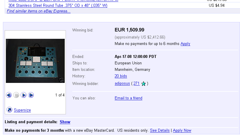 Hickok I-177 Ebay prices 2007: Very good one. 200$ |