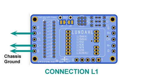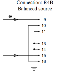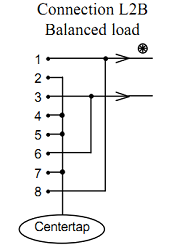 For all those applications from the table, where switch #7 is closed ("On"), a balanced input with grounded center tap can be created. For this, the CL connection is connected to G with a wire link. L+ and L- become the inputs. This would be useful for instance for a balanced amplifier, and LL1544/1545 is the driver transformer for the output stage. Note, this doubles the gain, because what was 0....+2Volt before, becomes now -1...0....+1Volt.