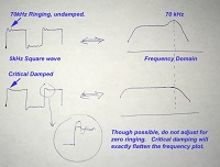 For an adjustable option, insert the capacitor of 470pF at the position of R1 at the board. The variable resistor will replace the 6k7 resistor and it's value should be 10k. J2 is open and J1 is closed. Now the network can be fine tuned for what is called critical overshoot, this is a quick and very reliable methode to get the best adjustment.