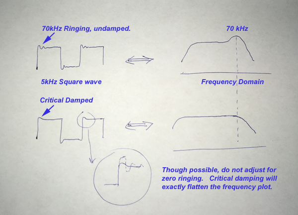 - Adjustment with an oscilloscope. I will replace the hand sketch by an oscilloscope pictures later.