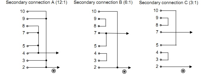 16 Ohms with 3k tube | 10+9, 9+3, 3+2, 8+7, 7+5, 5+4 |