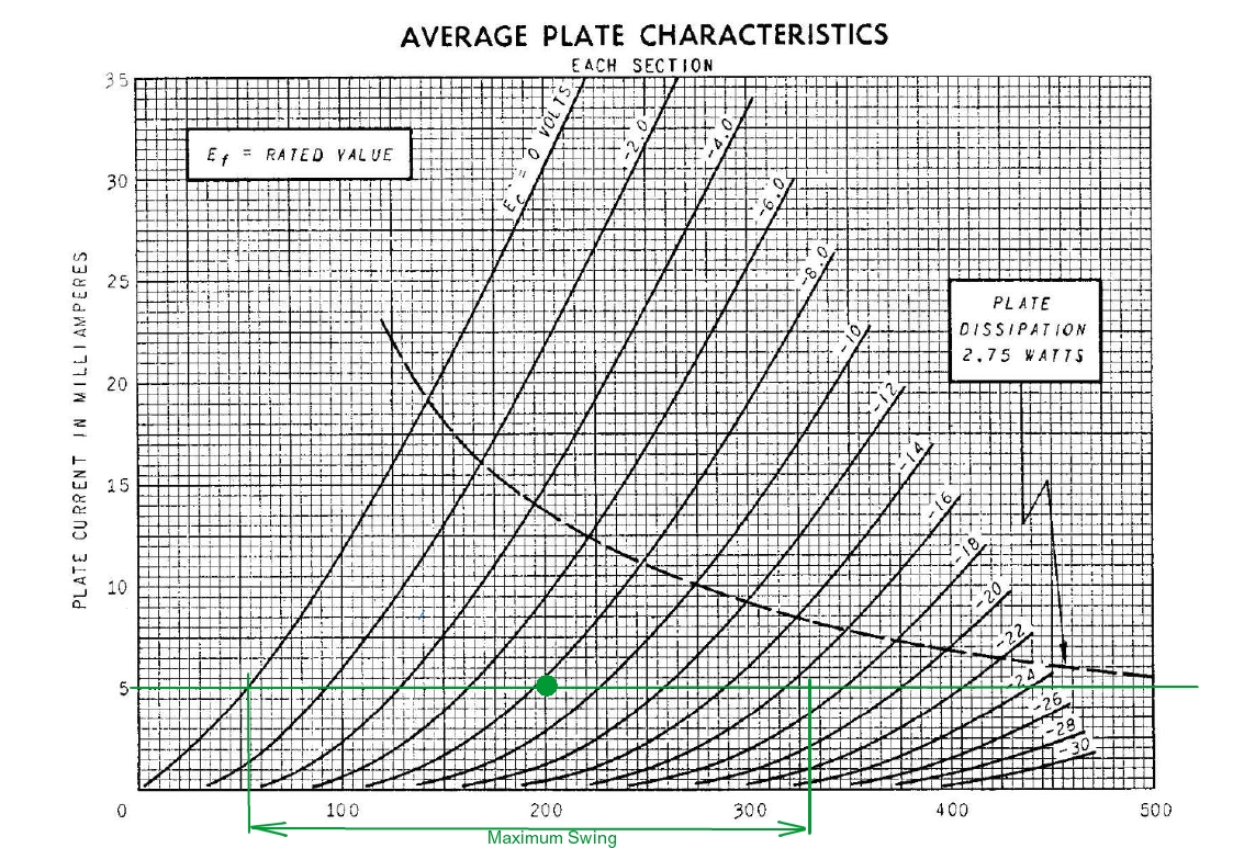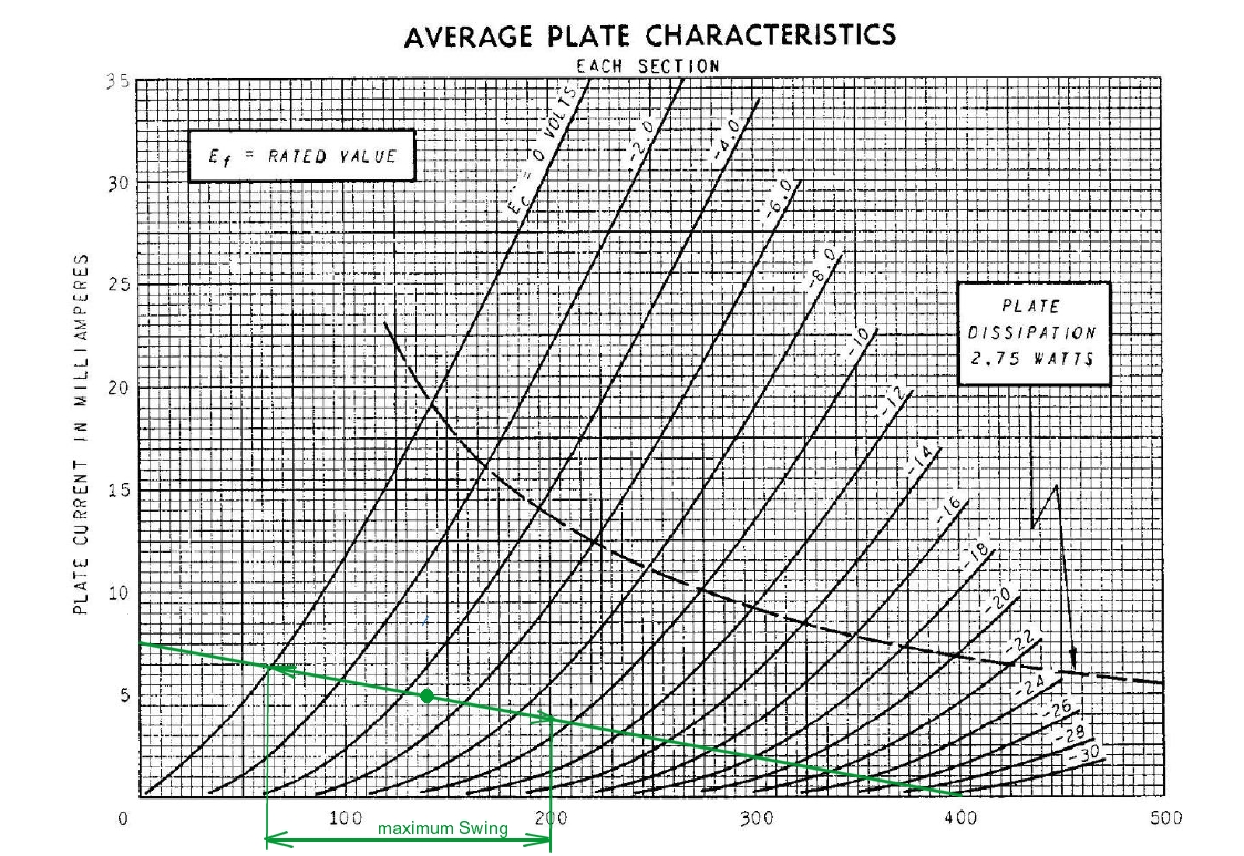 When constructing the load line, in it's own way, this method will show you the benefit of using a plate choke. There is no more resistor load, and the load line is just a horizontal line. The movement along such a line, means the signal sweep stays away from this nasty area of high voltage, low current, where the distortion of every tube is highest. Also the distance between crossings of this load line, witch each tube curve, has the highest uniformity. Which minimized distortion also at high signal sweep. And.... all of this works nice even at low Vb.