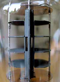 De al groter dan gemiddelde anodeplaat is voorzien van extra koelprofielen. Wat gelijk voor extra stevigheid zorgt. Volgens de fabrikant is er een dusdanige constructie uitgedacht dat het rooster plus kathode/gloeidraad gemakkelijk heel precies gemonteerd en gecentreerd kan worden. Er hoeft niet met allerlei hulpgereedschap geprutst te worden om het geheel symmetrisch in de anode te krijgen. Dat dit de liniariteit ten goede komt zal duidelijk zijn. Een ander opvallend, positief, punt is de werkelijk minimale restbrom die overblijft, bij het voeden met wisselspanning. Met de ontbrompotmeter draai je de brom bijna compleet weg.