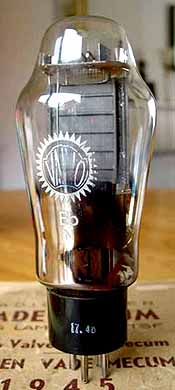 plank als de single plate RCA 2A3. De buis is mooi gebouwd, met acht gloeidraden.