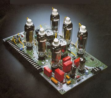 OTL CIRCUIT BOARDThis why the NYAL OTLs are so easy to service. What you are looking it is the whole Futterman OTL shabang...NO OUTPUT TRANSFORMERS NEEDED. You will also note that this is a hybrid printed circuit/hard wired design with all of the high current running through Teflon coated silver plated copper wire. (Harvey Rosenberg) |