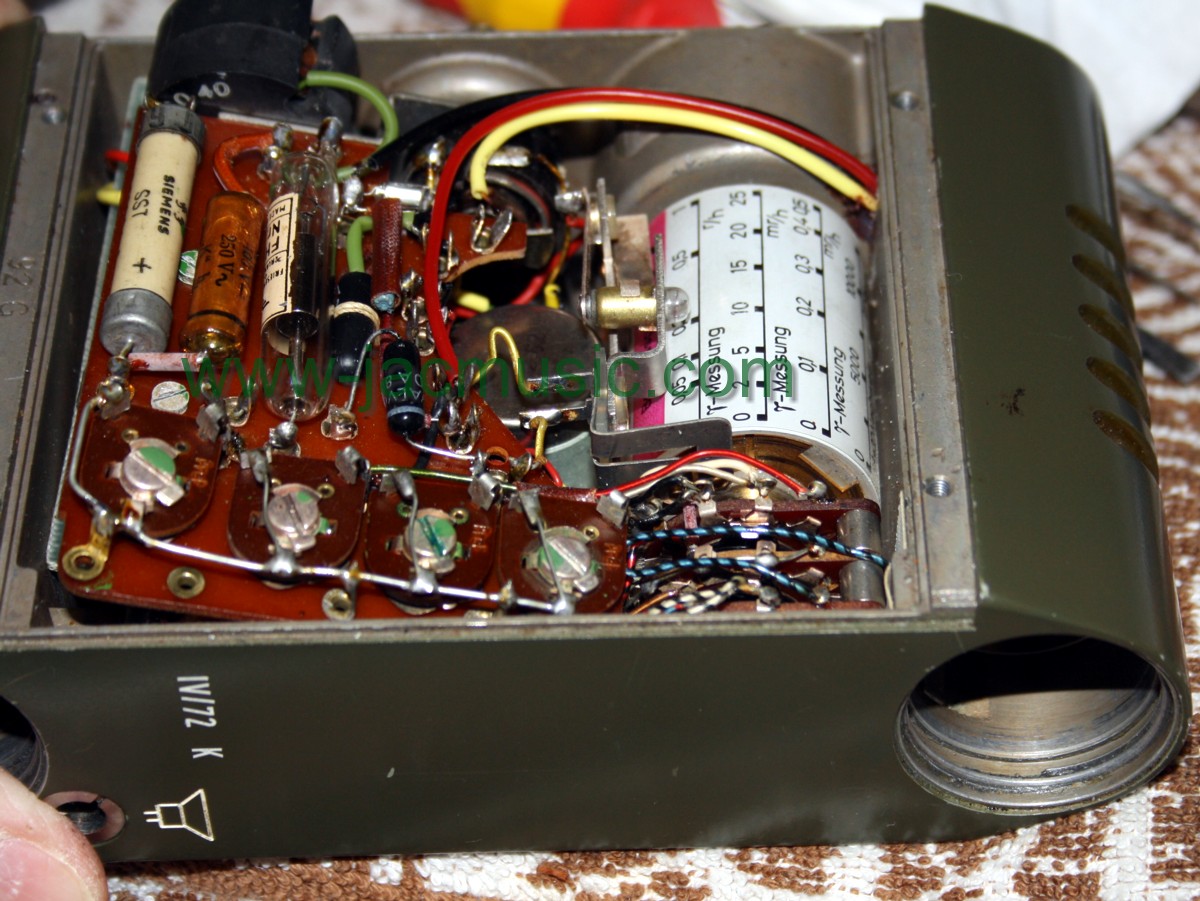 - Beta Radition. That means particles. Rotate the knob furthet to the right. Now the grid mechanically opens with a clever mechanism, operated by the main knob also. You can count now: 12500 particles/min or 320 particles/min.