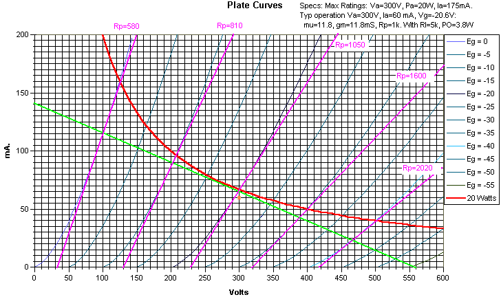 One of the questions you may hear asked is how to pick an adequate load line for your design. You will hear talk about picking it with respect to the plate resistance of the tube in question.:"Pick the load resistance equal to the plate resistance to maximize power.", "Pick the load resistance equal to twice the plate resistance to maximize power.", "Pick the load resistance higher to minimize distortion.", "If you have a fixed input, the maximum power is ...".