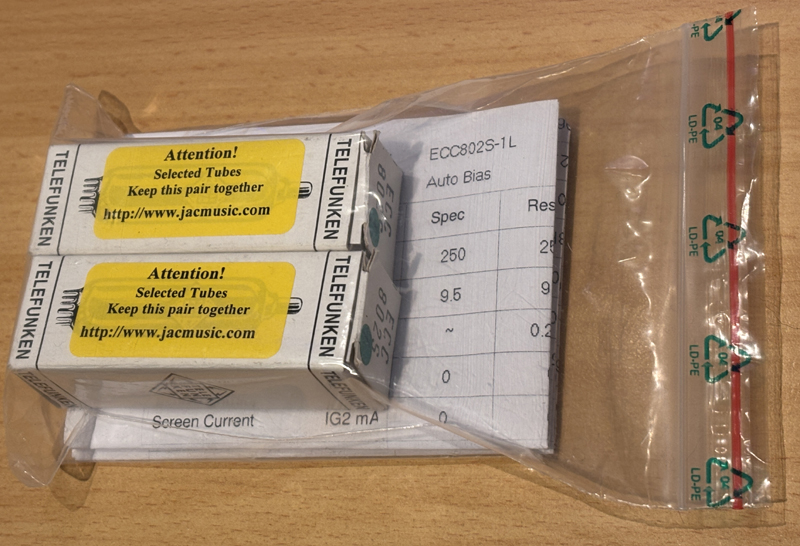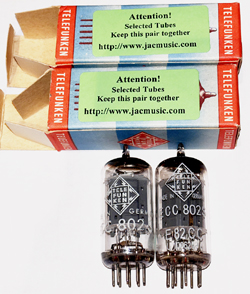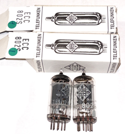 Telefunken <> ECC802S NOS. West GermanyThese tubes come with an Amplitrex computer test report. Beautiful optical and electrical condition. Picture1 - Picture2 - Picture3 - Picture4