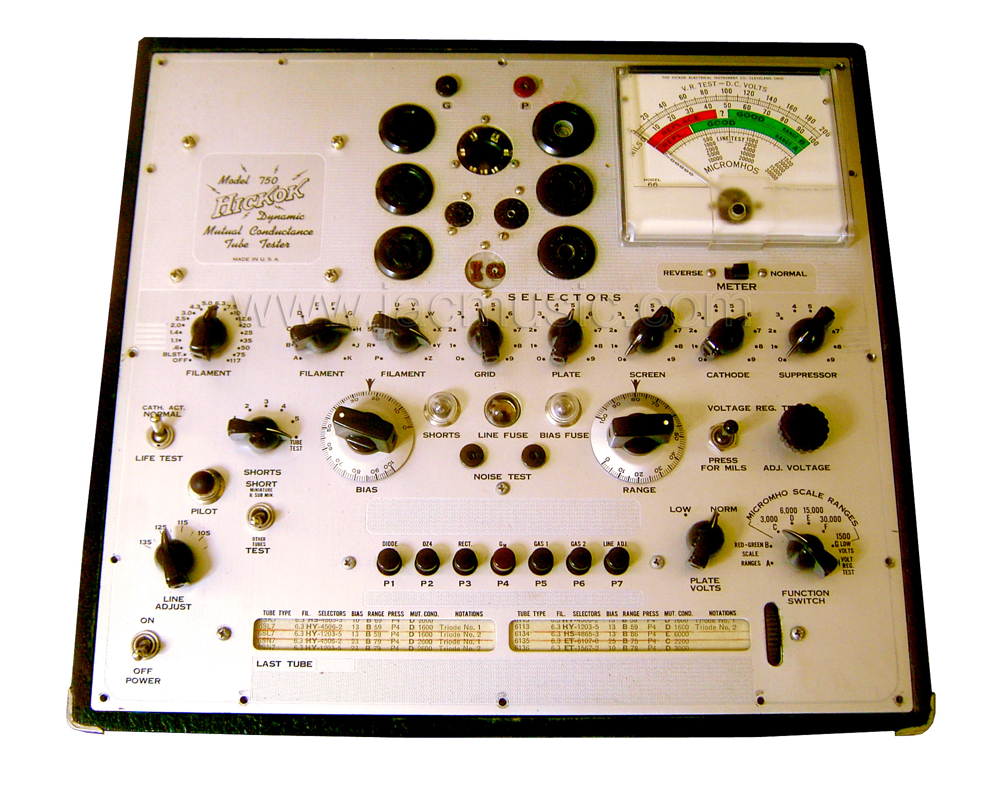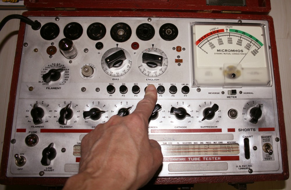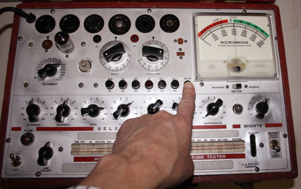 The largest laboratory testers. These are laboratry testers. You can adjust the grid voltage, and then you get the Micromho value, which you compare to the the roll chart.