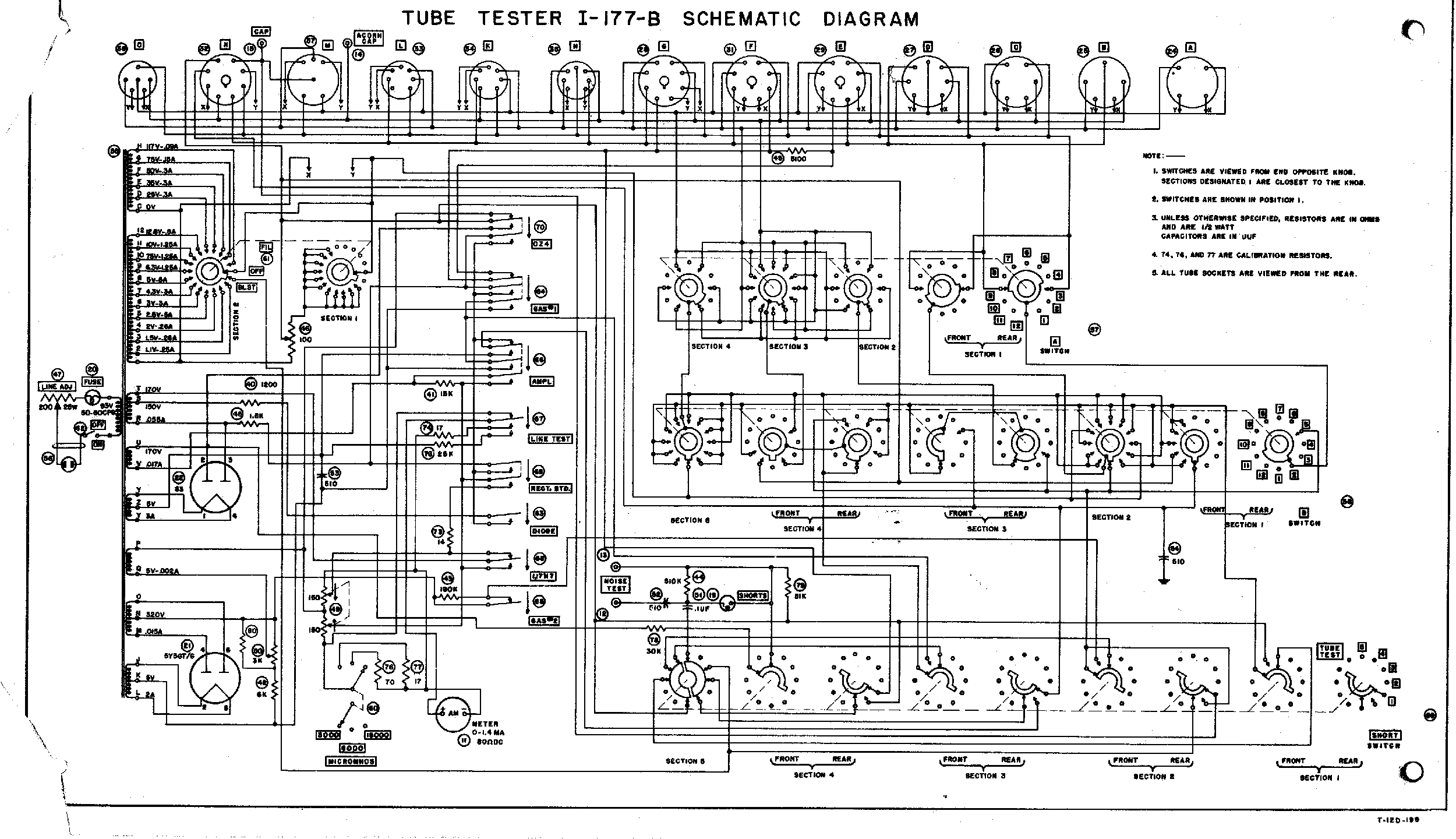 This one came after the I-177, reminds me a bit of the 600. It has very few sockets. No direct reading of Gm in micromho. It has very straight forward way of operating it. What is nice, is the test switch and the short-circuit switch are combined, so you go automatically through the short test, before doing functional testing. Very popular tester. Switches inside are ceramic. Very good service documentation exists still today, and it has nicely arranged calibration settings inside. So if you only want to do a good/bad test without knowing what or why, this is your tester.