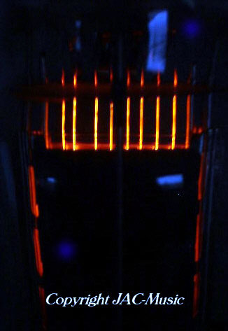 Note 1) Open Filaments means, the filaments and the grid are longer than the Plate, and stick out on both ends for about 5...8mm. The cold ends of the filaments do not have a very good function, and cause distortion. The AD100 does not use this part of the tube, and the emitted electrons by the cold ends, will bypass the Plate, and land on the glass. At maximum Power this may cause fluorescent, blue glow on the tube glass inside. See also our Tech Brief on Blue Glow in Tubes.
