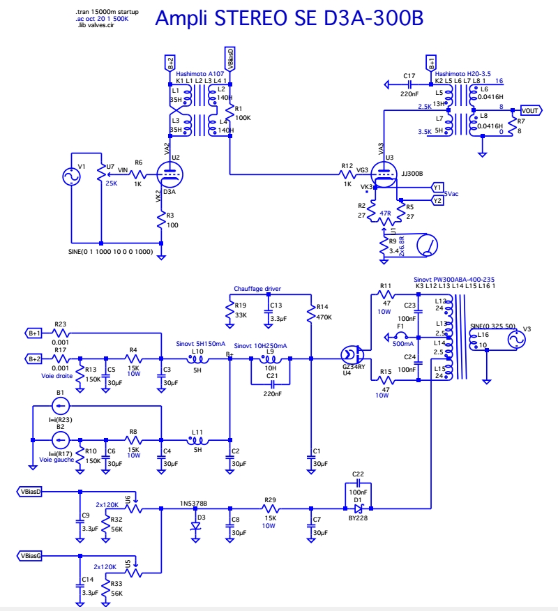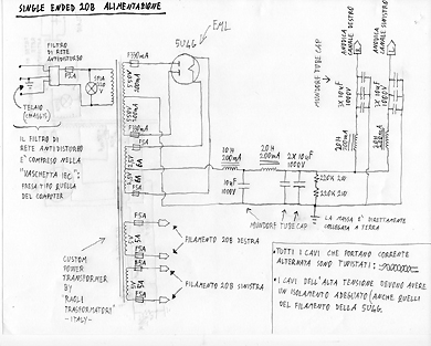 I have made the best possible in wiring to avoid CEM noise. My technical choice was to make something as simple and basic as possible, like in the 30th. So no DC regulated heating, no enormous capacitors, and the less components as possible. The negative bias is not the safest solution, but I took the risk for the two designs, PP KT88 and SE 300B. I don’t want big capacitors on cathode like with automatic bias. I’m using the 300B amp on the medium/high part of a Klipsch Heresy from 1973.