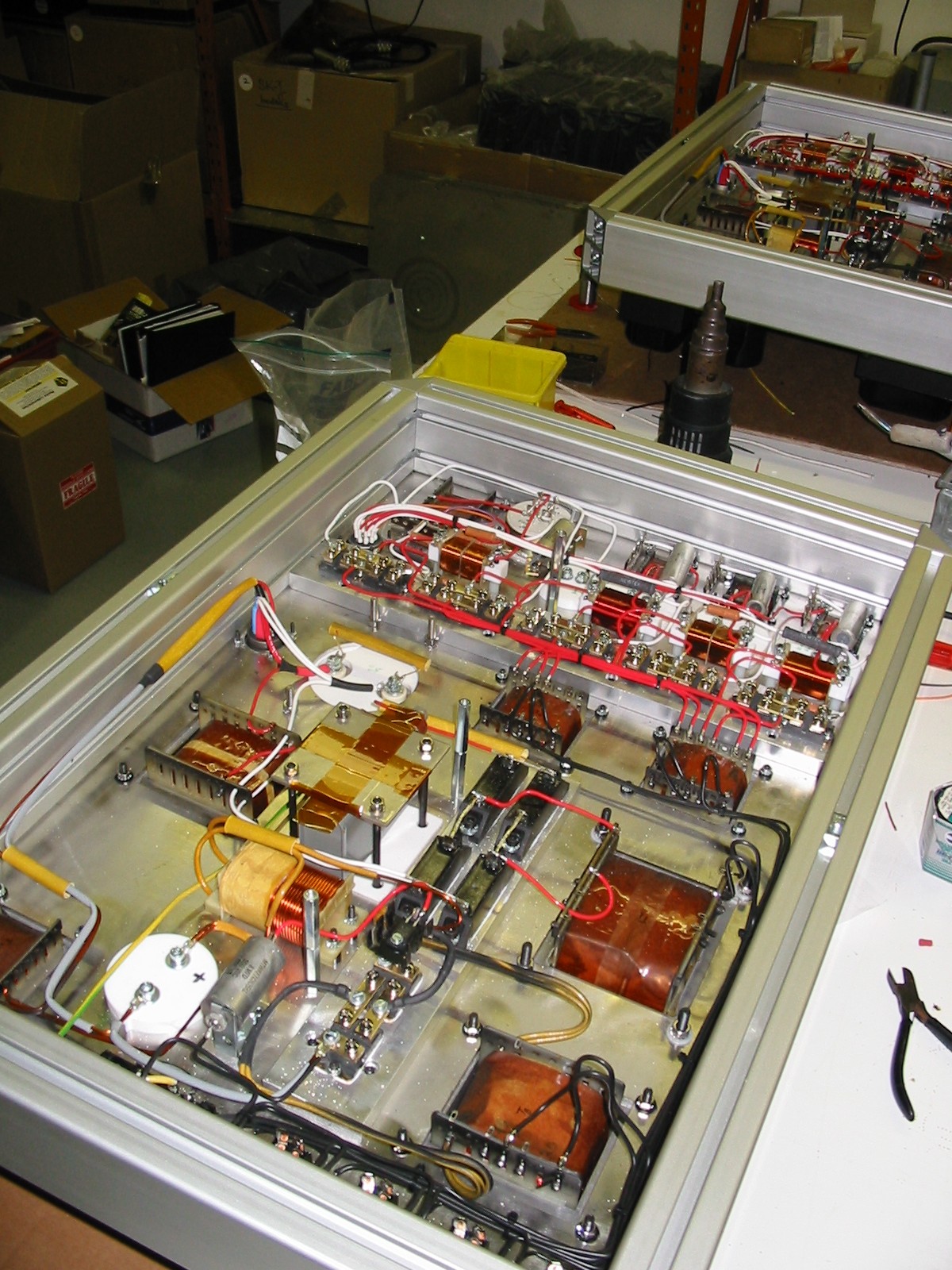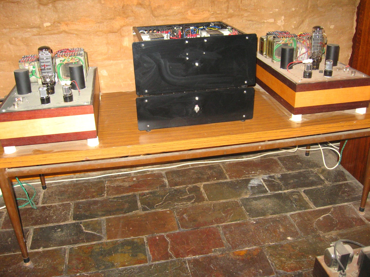 The bass are assumed by two Mullard 5-20 like PP KT88 mono blocks, made with the same aesthetic, delivering a punchy 30W (measured). The PP KT88 is absolutely hum free, and it is not possible to ear if it is running or not even with the head inside the boomer. I’m electronic engineer in military aerospace, and the CEM protection is not a secret for me. With the new tubes, the SE300B hum and HF noises are not audible with the head more than 10cm from the middle horn. I’m using a DSP as pre-amplifier, digital room correction & cross over (numeric parts of MINI-DSP 2X4HD+ 4 X PCM1794A Dac with hand made low noise power supply).