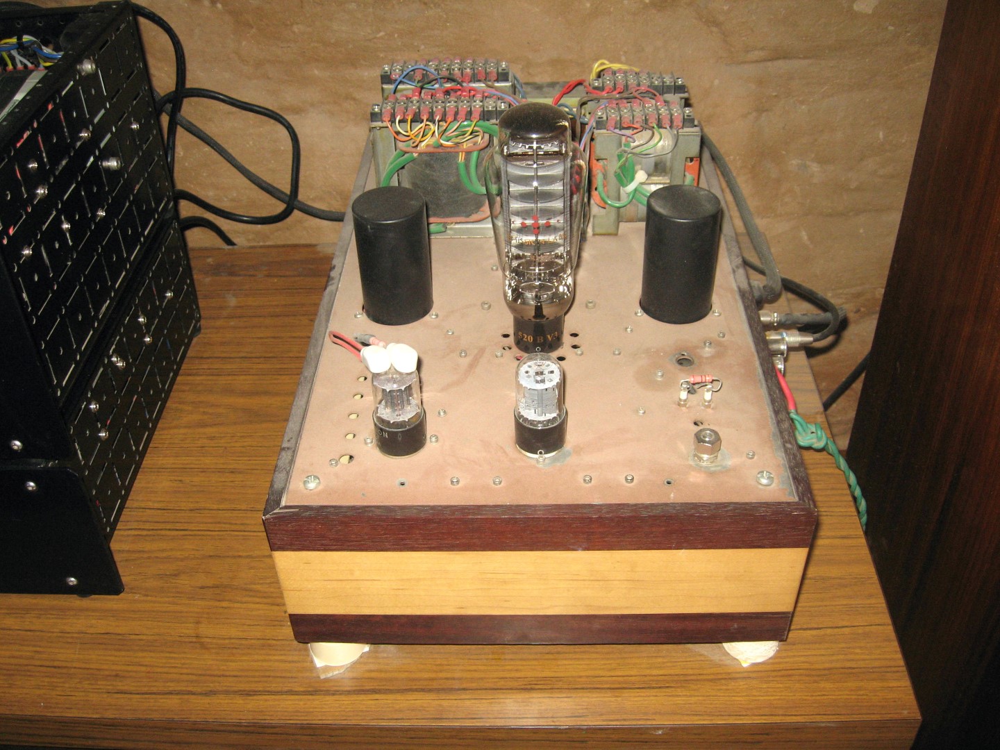 I would like to share with you some photos of my DIY integrated amplifier. This one was in my mind for some years until I decided to build it after thinking that it was the time to have a “definitive” amplifier because I had built other 2 “cheap” amplifiers, but I was never fully satisfied by them, so I started to think of the “big one”. It is an integrated amplifier that is on duty in my liquid setup (computer audio: personal computer, usb to spdif converter, dac, amplifier, speakers). My choice was to build a very simple circuit, but using the best components I can buy, so here comes the description: from the unbalanced input the signal is fed into an input transformer that gives a 6dB boost, at the same time on the secondary side(s) of that transformer a rotary selector varies the volume switching between the 33 secondaries, after that follows a loading resistor and a grid stopper resistor feeding the signal into the grid of an Emission Labs 20B DHT that drives the primary of a Lundahl LL2735B output transformer (and the speaker on the secondary), the 20B tube operates in auto bias fashion with a nice Yamamoto panel meter for bias current indication, the filament runs AC. In the power supply section an Emission Labs 5U4G Mesh is used for full wave rectification feeding a choke input filter consisting of various stages to try to isolate the two channels. Only Mundorf film capacitors are used in both power supply and cathode bypass, the tubes are installed in beautiful Yamamoto teflon sockets. So it is a one tube per channel amplifier, if I have to describe how it sounds in one word I would say transparent. I would like to thank you all for giving me the possibility of building this thing that i’m enjoying for more then 3 years now, I hope you like my photos and I would like to wish you all Merry Christmas and happy new year!