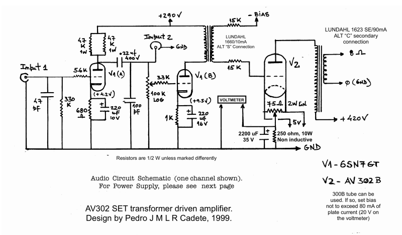 Sometimes things develop in an interesting way. This is a beautiful amplfier, in many ways. It uses the rare and amazingly good AVVT AV302B. Circuit topology is perfect, and no, the volume control NOT at the input. Finally :) The circuit Interstage coupled and has a well constructed power supply.
