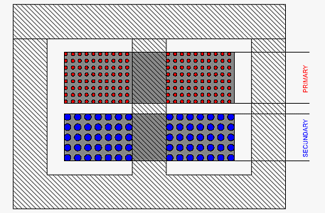 With Lundahl transformers they use the so called method of electrical compensation. It means they transformer is split in two symmetrical, identical sections. Each will have it's own AC ground current, in this drawing called I,1 and I,2. Because of the special windings technique, these parasitic currents flow in the opposite direction, and effectively cancel compensate each other that way. This takes some time to understand how it is done, but it explains why the whole transformer package is present two times! So if you have your transformer primary and secondary voltages, there are TWO transformers like that on the C-Core. These TWO are paralleled or serialized in the right way to give the required voltages, at ZERO radiation. .