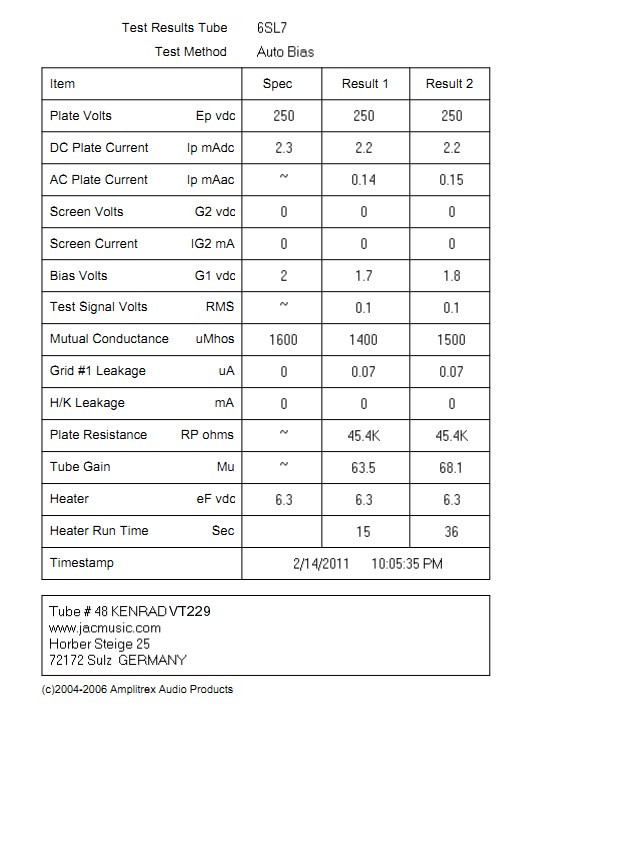 Look at the above... This means there is NO NEED for selecting those in pairs. Just take two, and it's a pair! JAN SELECTED. The reliability of JAN tested tubes is legendary. Read more about JAN TESTING here. |