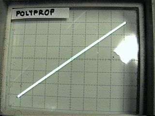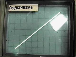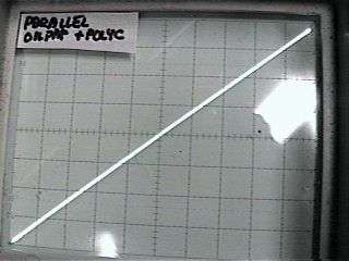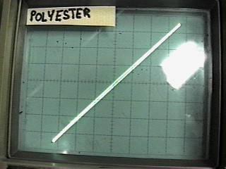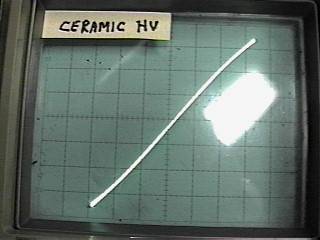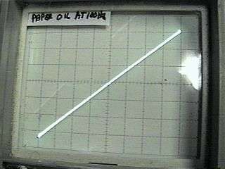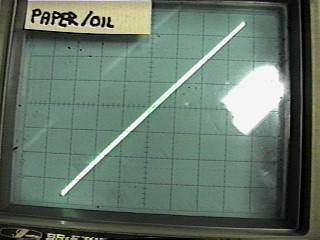 Results I measured several different types of parts, and captured the results (simply by training a camera at the scope). The value of each of the capacitors was constant, 0.1uF. The signal level was held constant at about 70 volts RMS at 600 Hz across the capacitors. (for about 26mA signal current). This is probably more than you would normally expect, and serves to show the results better. A number of capacitor types were used in this experiment. The first series of curves show paper and oil, polycarbonate film, polyester film, polystyrene film, polypropylene, 100 Volt and 1000 Volt ceramic and silver mica. Here's the results: